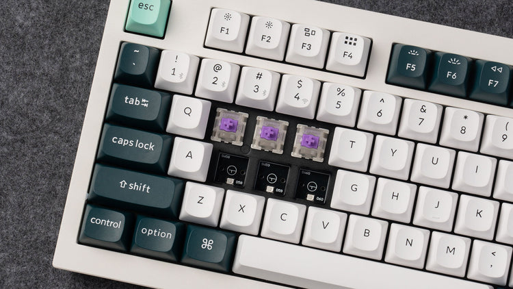 The Keychron Q5 HE keyboard uses Gateron Nebula Magnetic switches. These switches use magnets and sensors instead of physical contacts to process actuations, creating a much smoother keypress without bounce or chatter. The adjustable actuation point is determined not by location but by distance travelled.