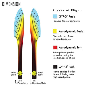 Dimension is the workhorse stable-overstable bomber of the 24.5mm distance driver class. The Dimension balances overstable resistance to turn while allowing a full flight before fade. Strong throwers will see only the smallest turnover at high speeds or into headwinds. Average throwers will get all the overstability they desire from this speed class in the Dimension. With its ultra fast speed and glide-promoting dome, the Dimension’s reliable fade helps pinpoint your target from a great distance.