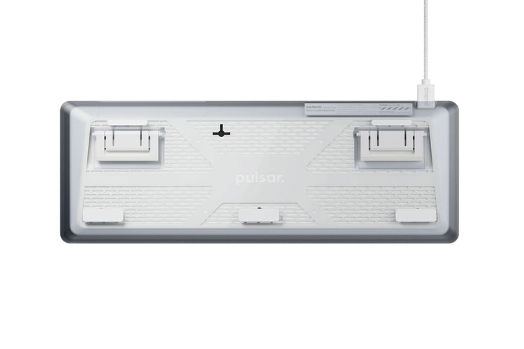 The Pulsar PCMK 2 HE keyboard uses Gateron x Pulsar Magnetic switches. These switches use magnets and sensors instead of physical contacts to process actuations, creating a much smoother keypress without bounce or chatter. The adjustable actuation point is determined not by location but by distance travelled.